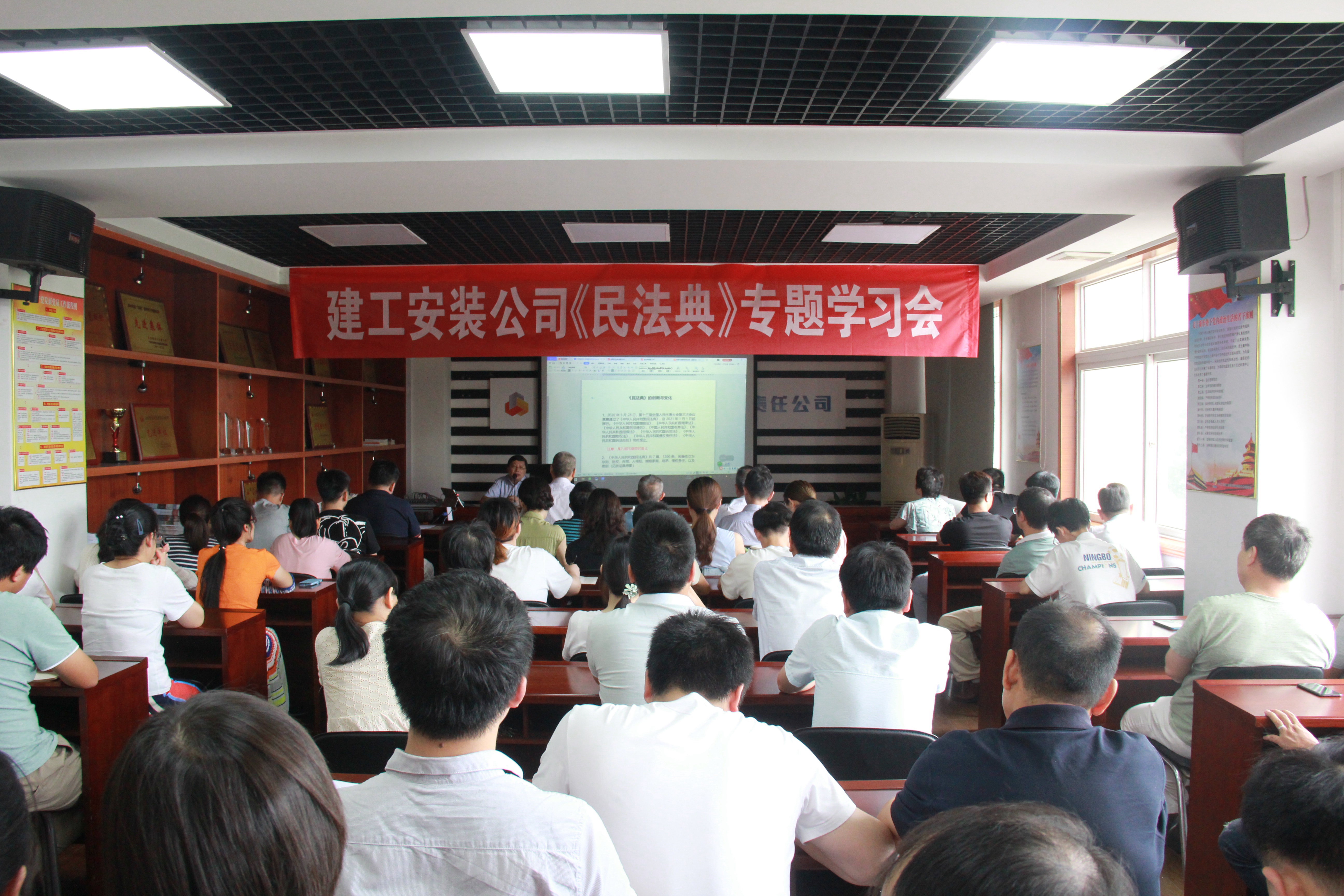 為深入學(xué)習宣傳貫徹習近平總書(shū)記關(guān)于全面依法治國的重要論述,特別是關(guān)于《民法典》的重要指示精神,深入學(xué)習宣傳實(shí)施《民法典》的重大意義、基本原則和主要內容,7月30日,建工安裝公司黨委組織召開(kāi)了《民法典》專(zhuān)題學(xué)習會(huì ),江西求正沃德律師事務(wù)所高級合伙人、公司常年法律顧問(wèn)成新生主任受邀擔任主講人。公司黨委中心組成員、機關(guān)員工等100余人參加了此次學(xué)習。