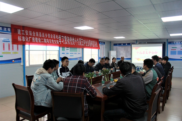 根據《中共江西省委關(guān)于認真學(xué)習宣傳貫徹黨的十九屆五中全會(huì )精神的通知》以及集團公司黨委的要求,11月26日,公司黨委書(shū)記、董事長(cháng)余恕保將黨的十九屆五中全會(huì )精神帶到了項目一線(xiàn),為全南縣返鄉基地標準化廠(chǎng)房建設二期項目黨支部進(jìn)行了宣講,并講授了一堂內容豐富、主題鮮明的專(zhuān)題黨課。公司黨委副書(shū)記、工會(huì )主席向洪江,副總經(jīng)理張柏林及項目部黨員、團員青年等30余人參加了學(xué)習。